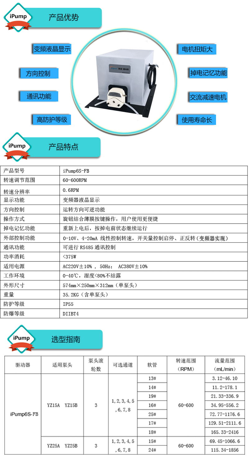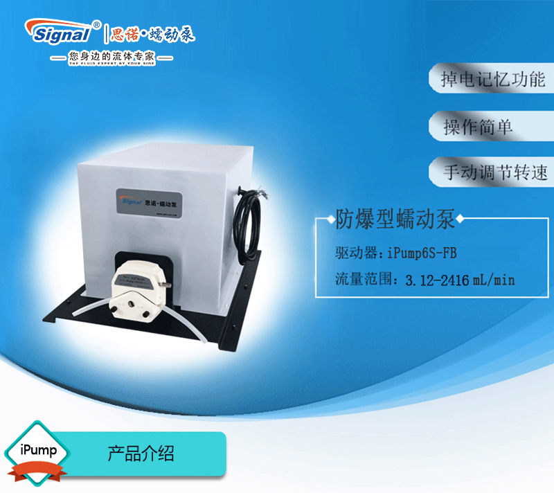 流量范圍:3.12-2416mL/min 免維護交流防爆減速電機驅動,變頻器調節轉速 電機扭矩大,可級聯雙泵頭 防爆等級DIIBT4,適合易燃易爆環境使用