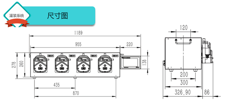 1.此灌裝系統由4通道組成,通道數量可定制,大可擴展至32通道;可安裝YZ25 YZ35 YZ25 YZ15泵頭;