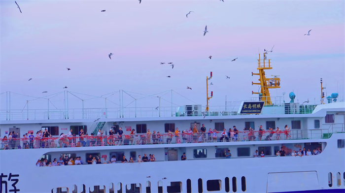 處暑之后,新秋之時(shí),天公作美,微風(fēng)不燥。坐在大巴車上的同事們一路歡聲笑語(yǔ),伴隨著沿途的風(fēng)景,8個(gè)小時(shí)的車程,很快到達(dá)了蓬萊,然后轉(zhuǎn)船到長(zhǎng)島。