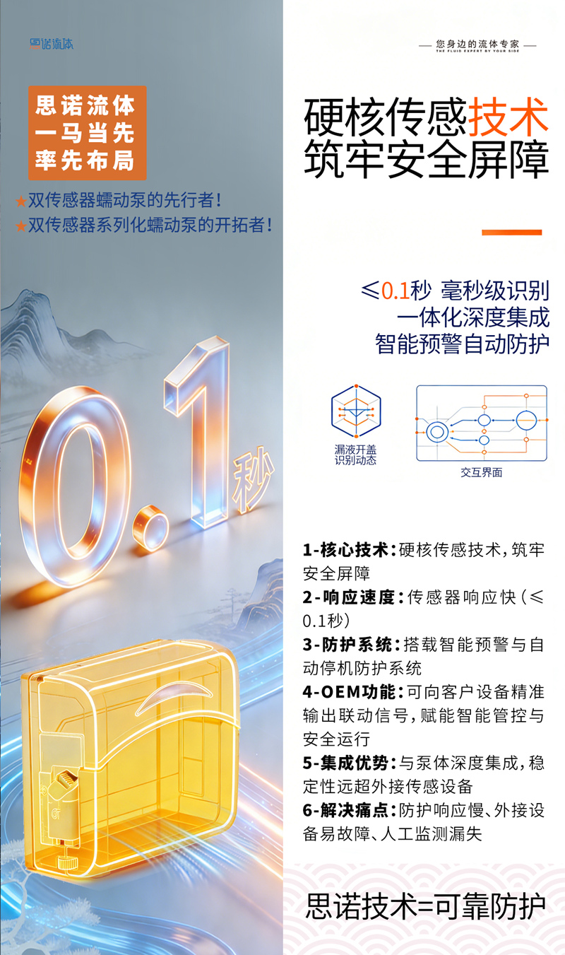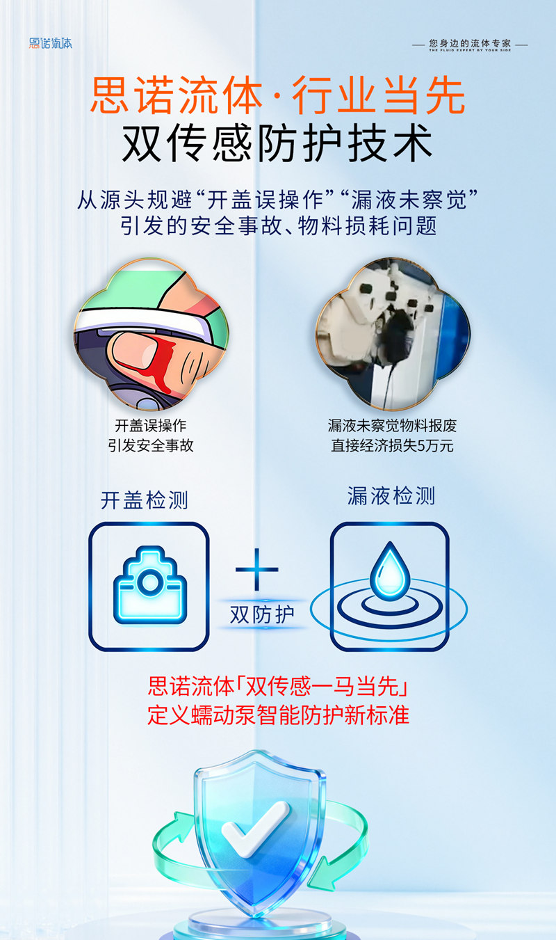 思諾流體錨定“雙重當先”戰略,以開蓋 + 漏液雙傳感技術定義蠕動泵智能防護新標準!
