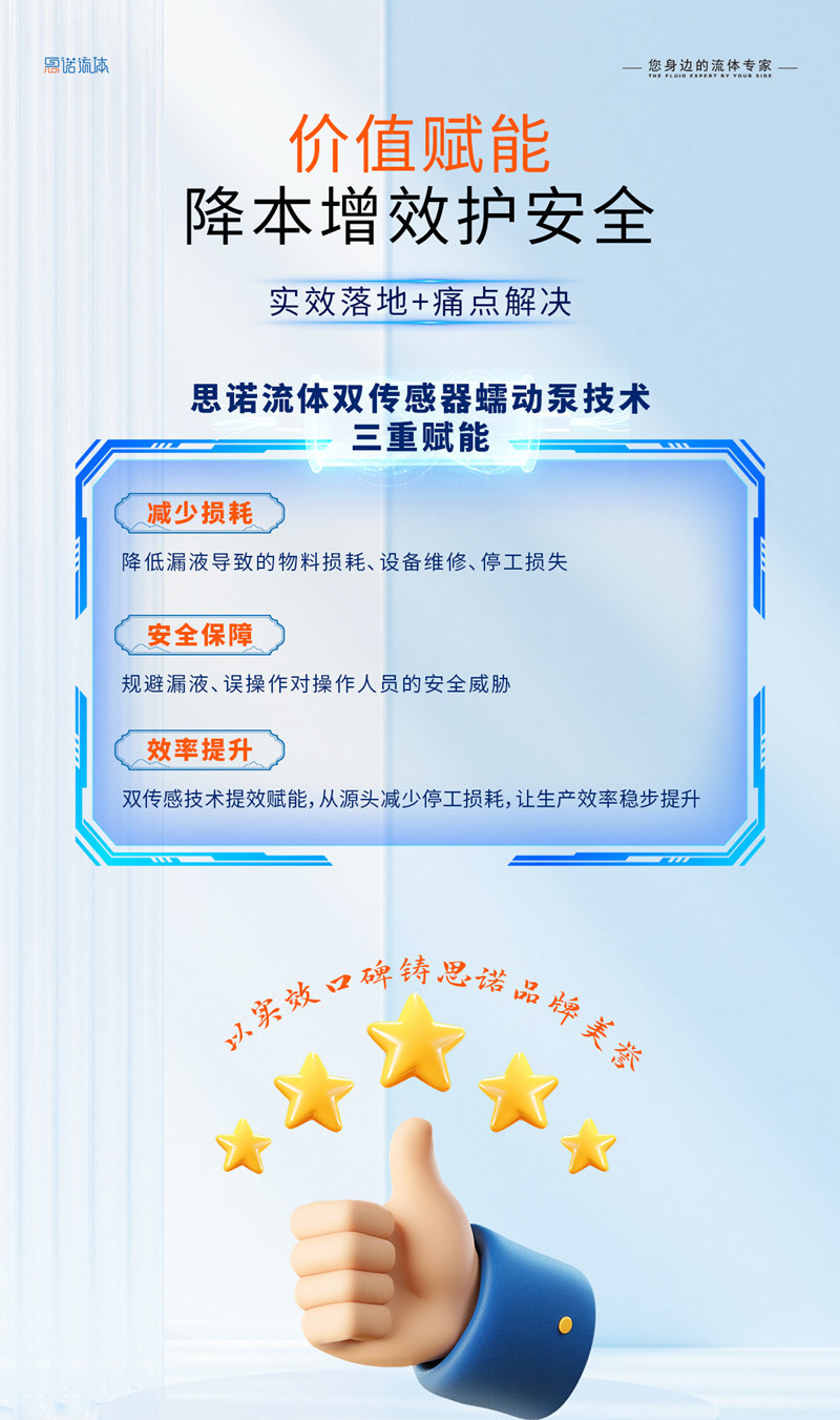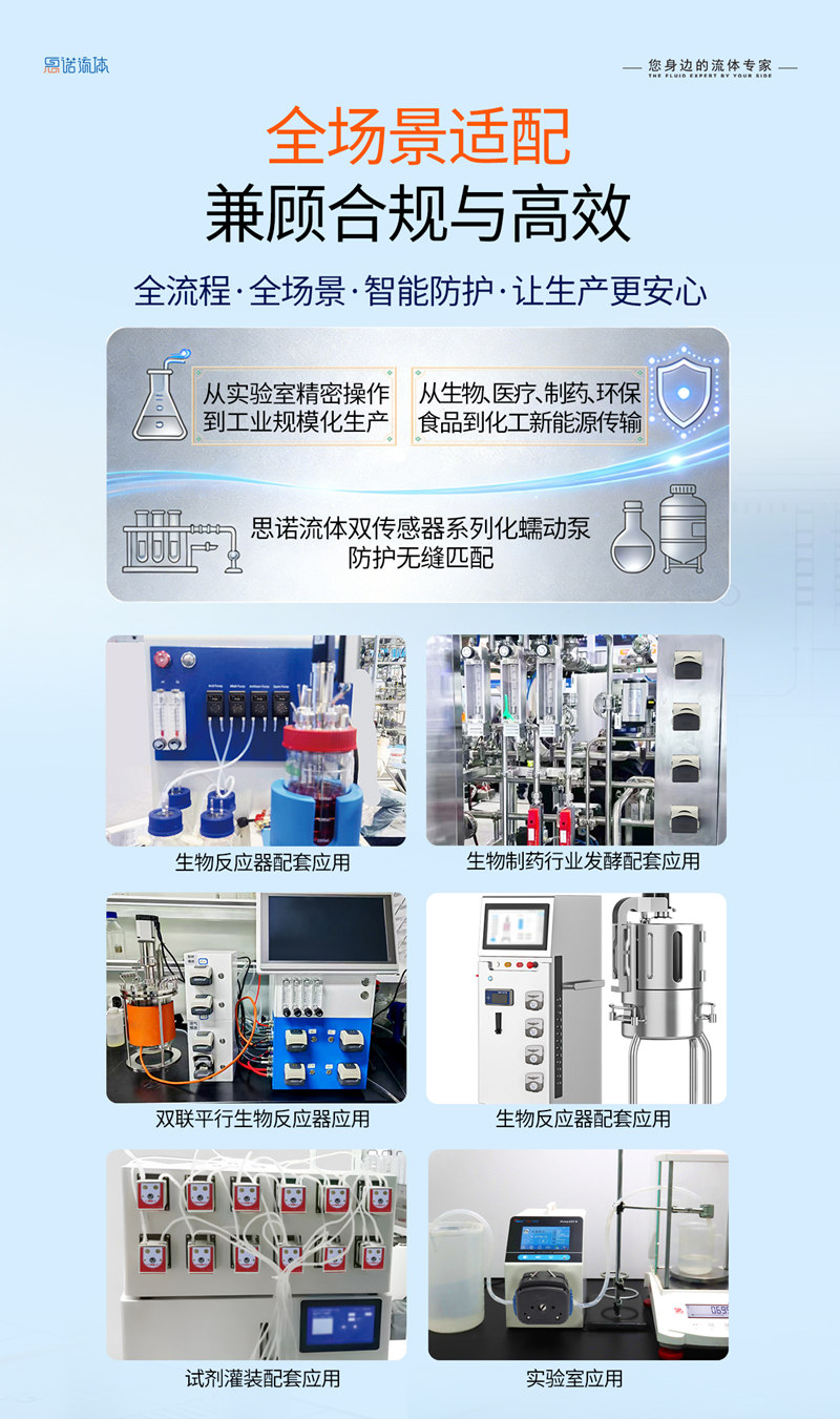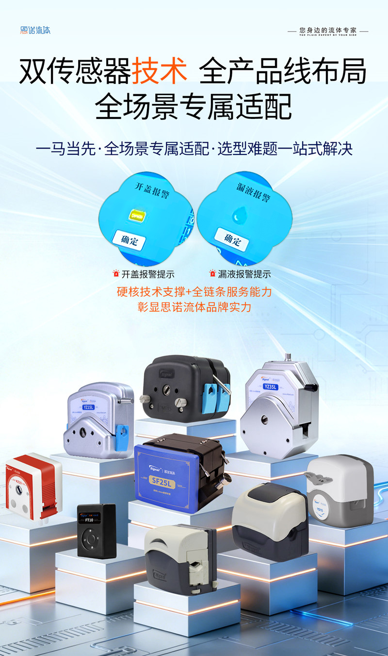 思諾流體錨定 “雙重當先” 戰略,以開蓋 + 漏液雙傳感技術定義蠕動泵智能防護新標準!行業內一馬當先研發應用,全產品線系列化覆蓋,≤0.1 秒毫秒級響應 + 智能預警筑牢防護壁壘,無縫適配生物、制藥、環保、食品、化工新能源等全場景,源頭規避安全事故與物料損耗,實現安全 + 成本 + 效率三重賦能,以技術標桿守護全場景生產安全!