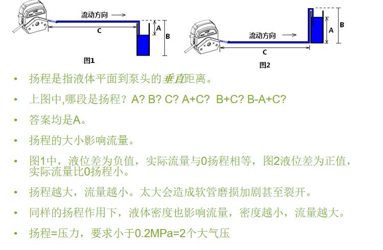 蠕動(dòng)泵是一種容積泵,其液體的輸送是通過(guò)軟管的蠕動(dòng)來(lái)實(shí)現(xiàn)的,因此在傳統(tǒng)意義上,蠕動(dòng)泵并不具備揚(yáng)程這一參數(shù)。揚(yáng)程通常是指液體在泵的作用下能夠達(dá)到的垂直高度,或者是液體能夠通過(guò)管道輸送的距L。而蠕動(dòng)泵并不是通過(guò)創(chuàng)建壓力來(lái)提升液體高度或者推動(dòng)液體流動(dòng)的,因此沒(méi)有標(biāo)準(zhǔn)的揚(yáng)程值。